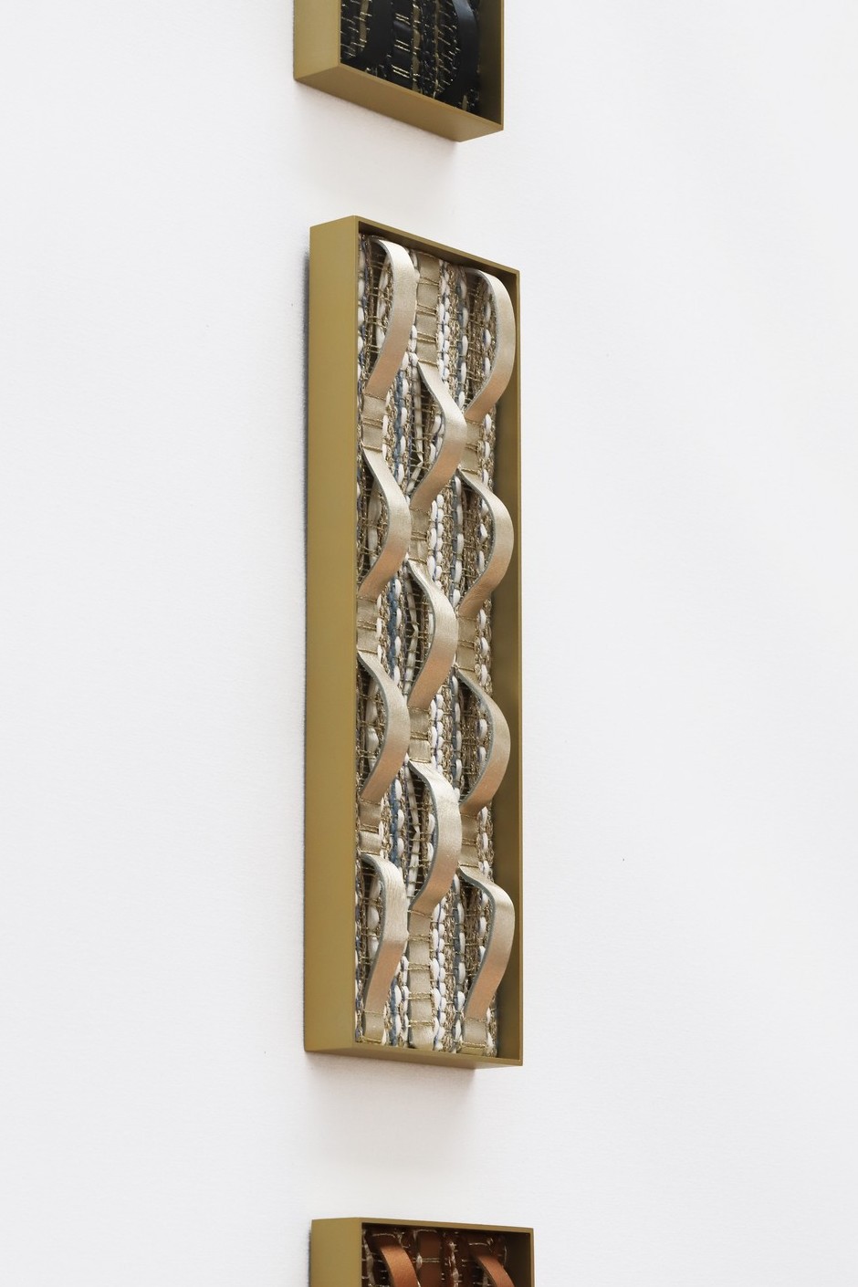 Tissé main, lanières de cuir, raphia, fil lurex - 120 x 50 cm